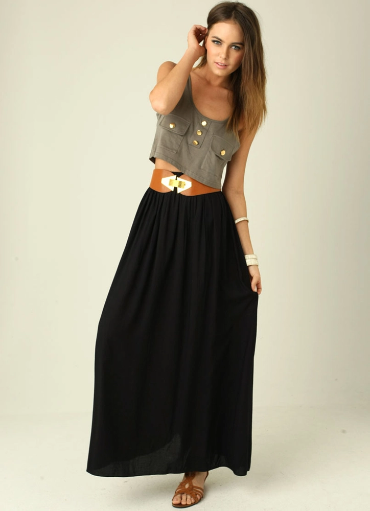 برای استایل جوانپسند، دامن بلند را با کراپتاپ ترکیب کنید.